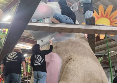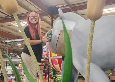Volunteers aren’t assigned to just one parade float, however. This year, each volunteer helped decorate eight floats altogether.