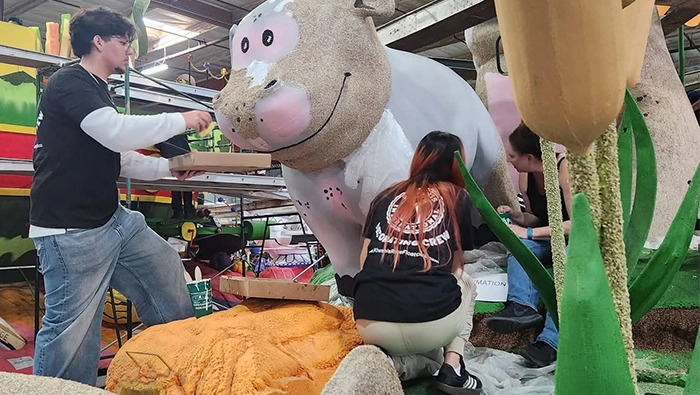During the annual Tournament of Roses Parade (aka “The Rose Parade”) in Pasadena, California, U.S., Kiwanis International’s float is always one of the most fun to see. But it takes a lot of work to be that creative!